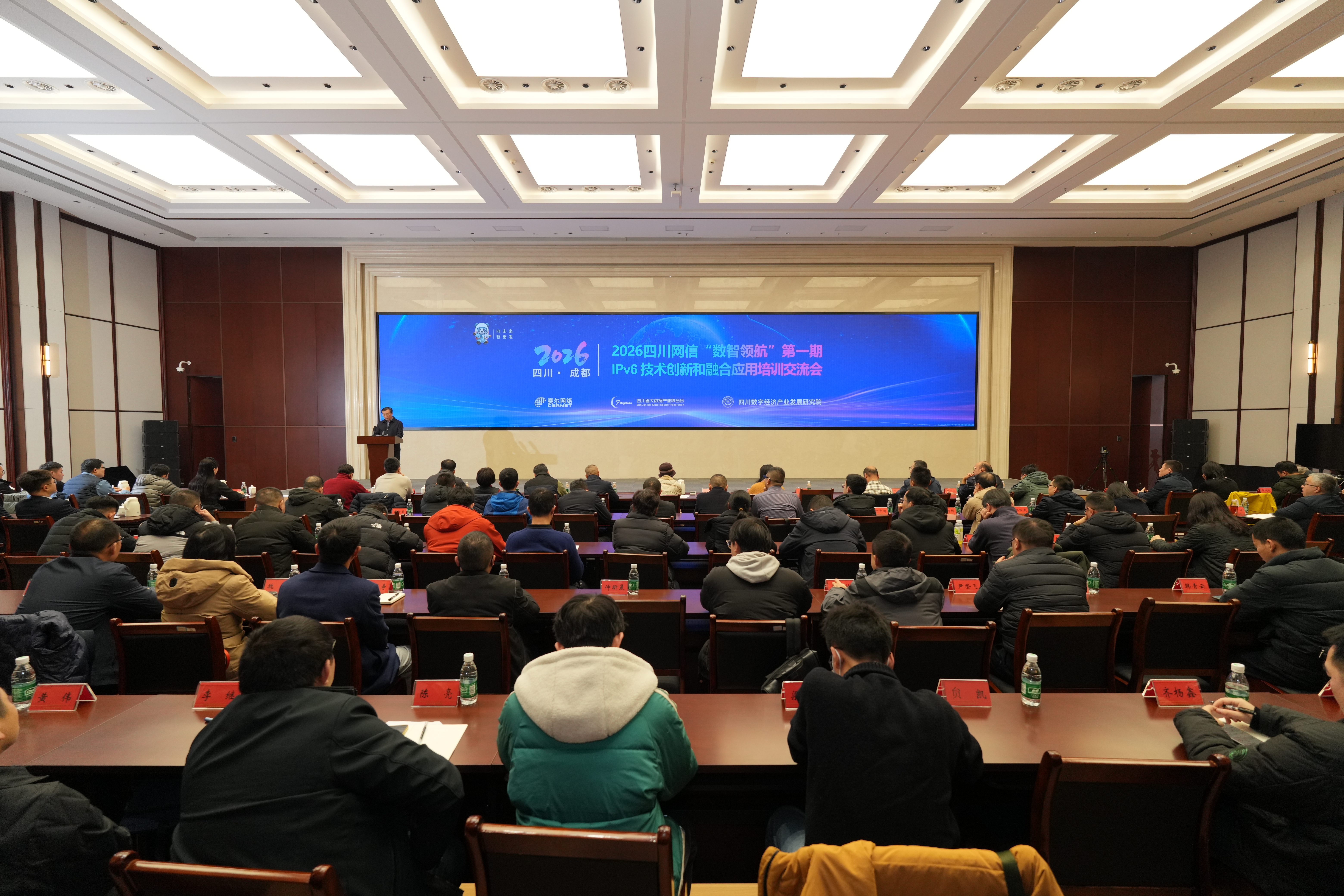 2月5日,2026四川网信“数智领航”第一期IPv6技术创新和融合应用培训交流会在成都举办。本次培训交流会会聚了省直有关部门(单位)、各市(州)党委网信办、行业专家及网信企业等代表近150人,通过专家授课、案例分享与经验交流等形式,聚焦当前IPv6技术创新与融合应用的堵点难点展开深入研讨,旨在凝聚共识、破解瓶颈,为提升我省IPv6技术创新与融合应用水平注入新动力。