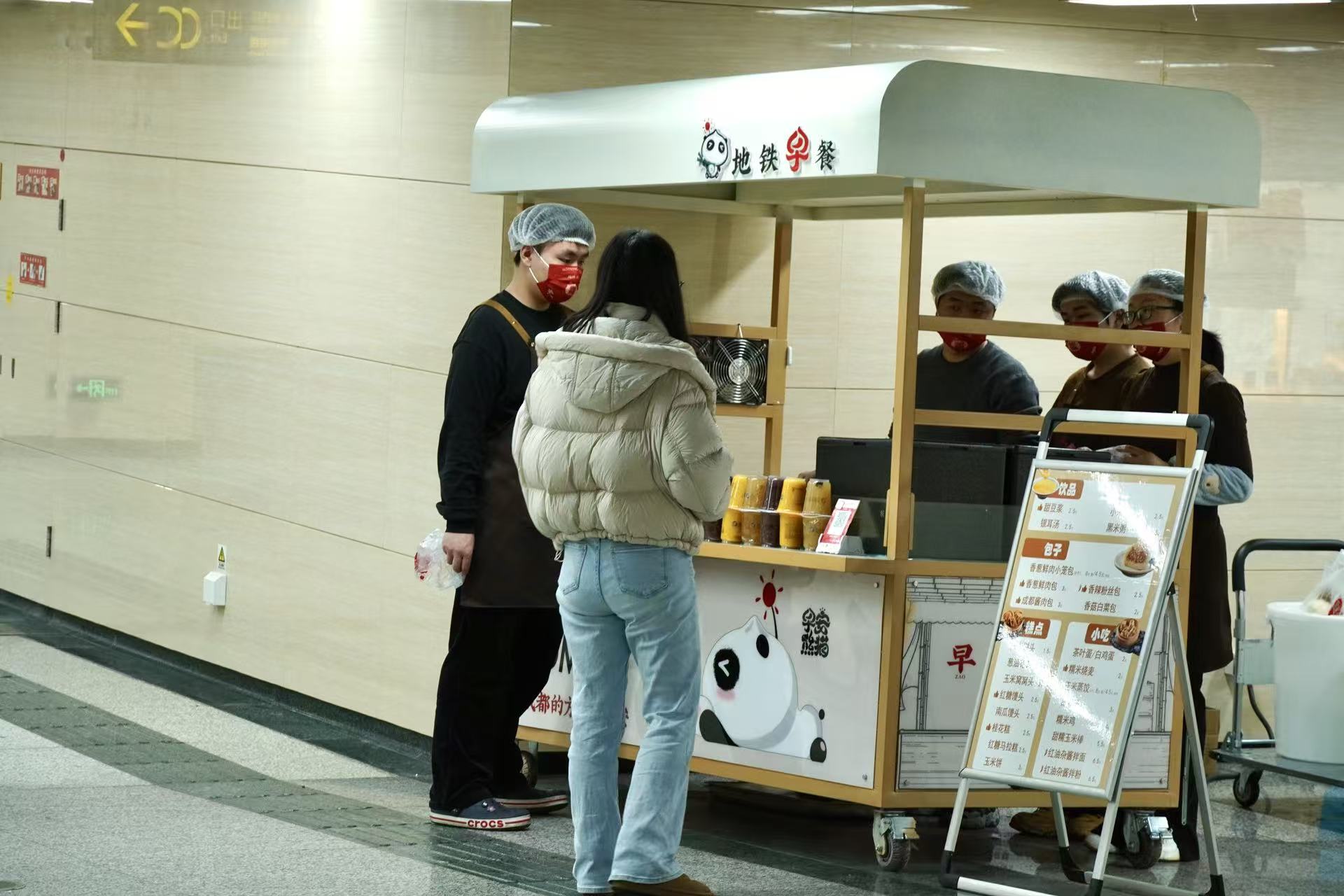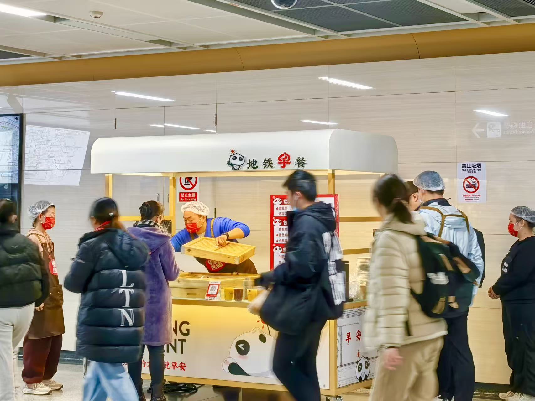 早安熊猫·地铁早餐车吸引着往来的通勤人群