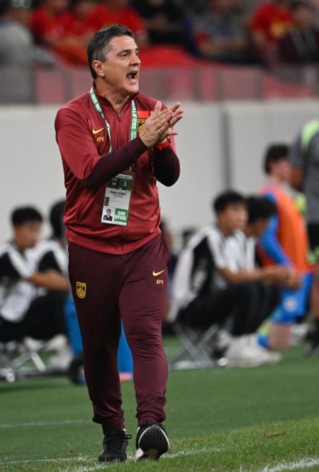 2025年9月9日,中国队主教练安东尼奥·普切在U23亚洲杯预选赛场边指挥。 新华社记者 邹竞一 摄