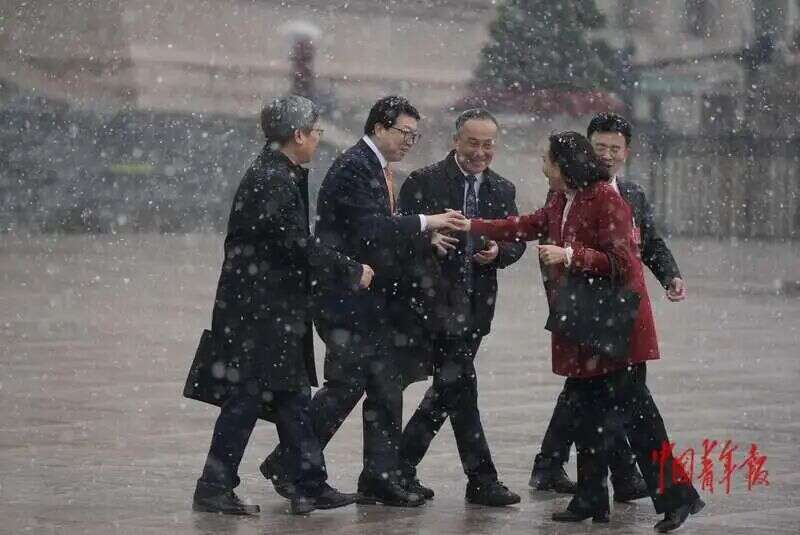 ●走在春雪中的全国人大代表